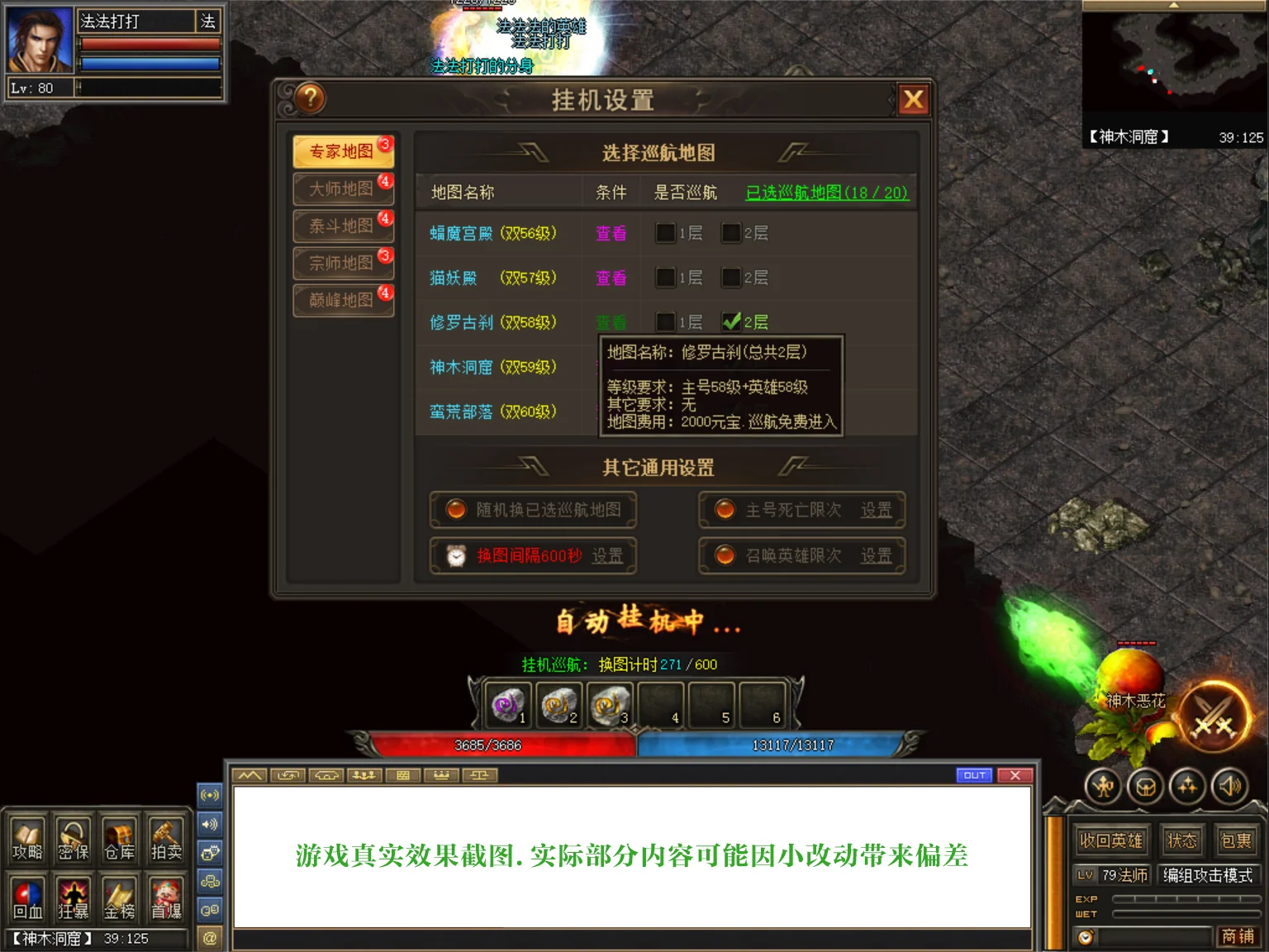 按F12键打开挂机设置界面,法师/道士需手动设置攻击魔法,勾选「自动路径」和「挂机时拾取物品」